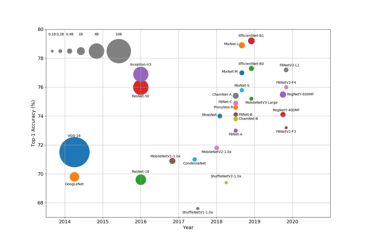 Reducing Model complexity — A better approach to control the size (memory footprint) and computation complexity of the learning algorithm is by constraining the model architecture (for e.g. by selecting a smaller hypothesis class). This approach has the added advantage that these models can be trained using traditional optimization routines. Apart from model building, this is one of the dominant approaches for deploying resource efficient models for model inference. Most importantly, this approach extends to even Deep Neural Networks (DNNs) where, as evidenced by Fig 2, there has been a slow but steady progression towards smaller, faster, leaner architectures. This progression has been helped by the increased use of Neural Architecture Search (NAS) techniques that show a preference for smaller, more efficient networks. Compared to the lightweight ML algorithms approach, model complexity reduction techniques can accommodate a broader class of ML algorithms and can more effectively capture the underlying process.